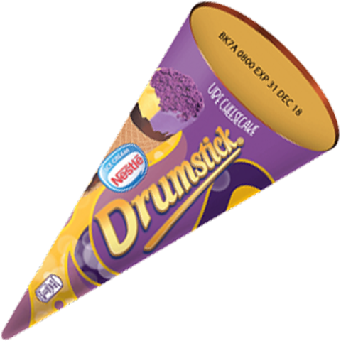 Ube and cheese flavored ice cream with cake pieces in sugar cone